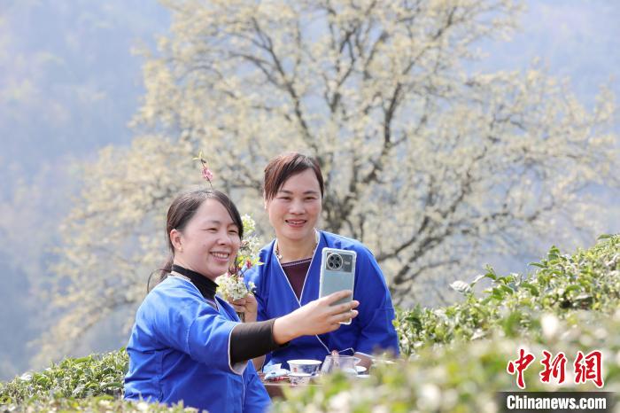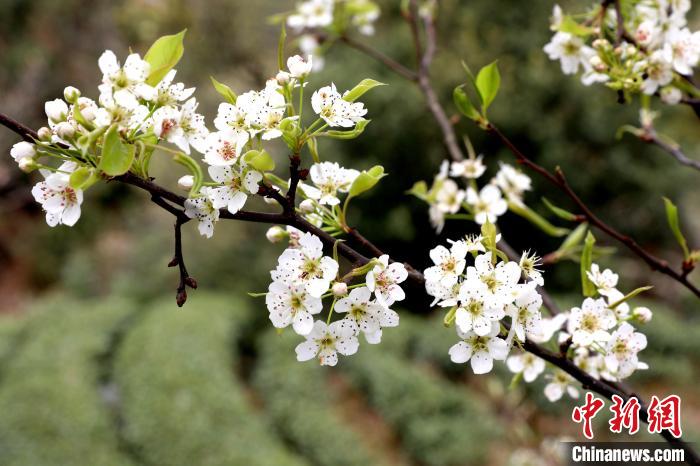3月16日,廣西三江侗族自治縣八江鎮(zhèn)歸令村六更屯種植的千樹梨花迎春綻放,與青翠茶園、特色民居相映成趣,構成一幅如詩如畫的春日畫卷。當?shù)卮迕窦坝慰图娂娗皝聿刹栀p花、“打卡”拍照,享受春日美好時光。圖為村民在采春茶。龔普康 攝