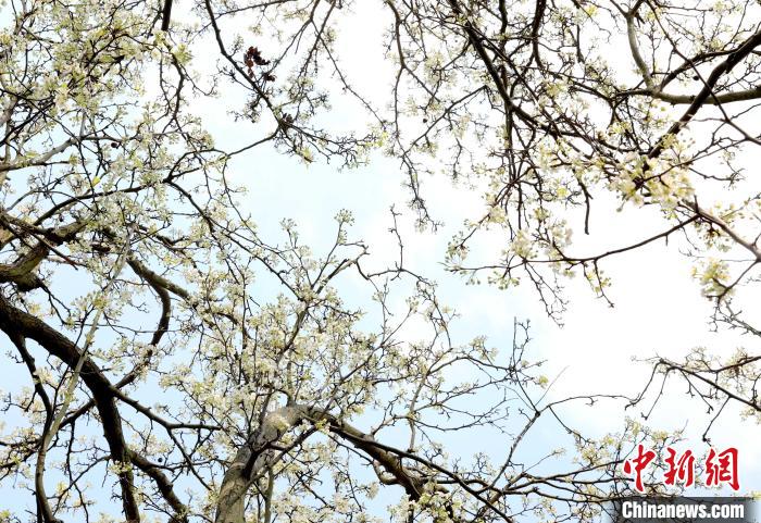 圖為梨花迎春綻放。龔普康 攝