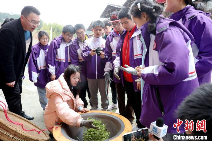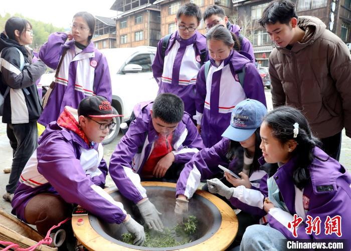 3月15日至16日,廣西柳州市一所中學(xué)組織千人研學(xué)團到三江侗族自治縣八江鎮(zhèn)布央村仙人山景區(qū)開展茶文化研學(xué)活動,沉浸式采春茶、炒春茶、品春茶,深入了解茶種植、茶制作、茶文化、茶品鑒等知識,進一步培養(yǎng)實踐能力、提高勞動素養(yǎng)。圖為研學(xué)活動現(xiàn)場。龔普康 攝