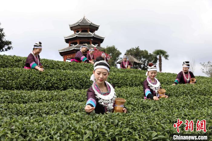 圖為茶農(nóng)在采春茶。龔普康 攝