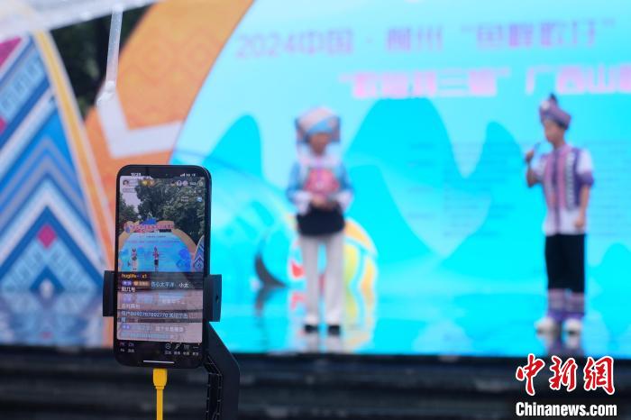2024年4月,廣西柳州,年輕山歌手同臺(tái)對(duì)唱,線上直播吸引網(wǎng)友。(資料圖)劉俊聰 攝