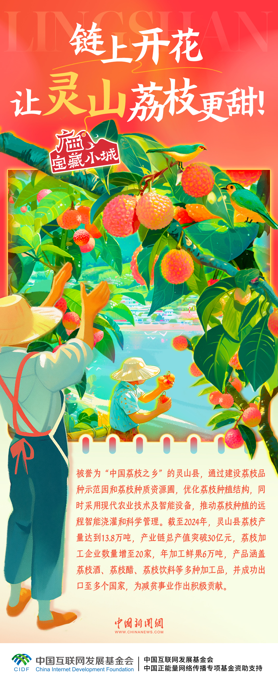 被譽(yù)為“中國荔枝之鄉(xiāng)”的靈山縣,正以創(chuàng)新之姿引領(lǐng)現(xiàn)代果業(yè)發(fā)展浪潮,打造從鮮果到深加工的完整產(chǎn)業(yè)鏈,多元產(chǎn)品暢銷海內(nèi)外,實“荔”出圈。一起走進(jìn)廣西寶藏小城靈山,感受荔枝產(chǎn)業(yè)的智慧轉(zhuǎn)型↓↓↓