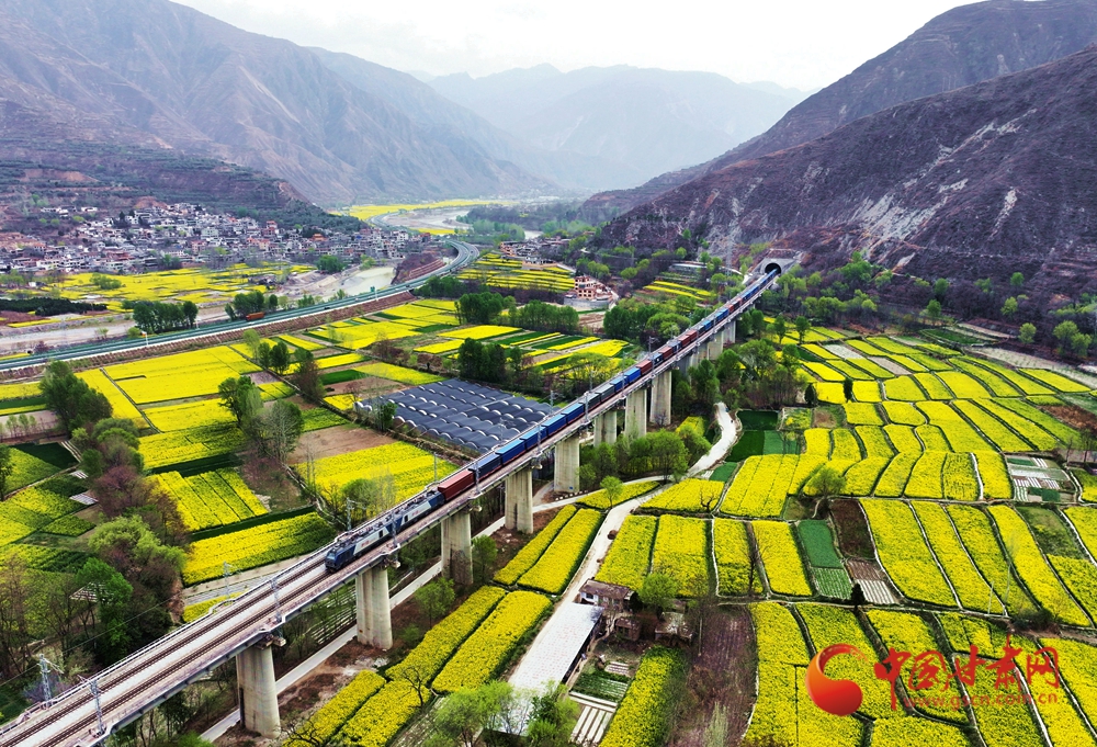 4月10日,列車(chē)在蘭渝鐵路宕昌縣沙灣鎮(zhèn)段附近行駛,穿行于花海之間?,F(xiàn)代交通動(dòng)脈與原始鄉(xiāng)野在此默契共生,火車(chē)轟隆駛過(guò),為春日畫(huà)卷增添了別樣的景致。