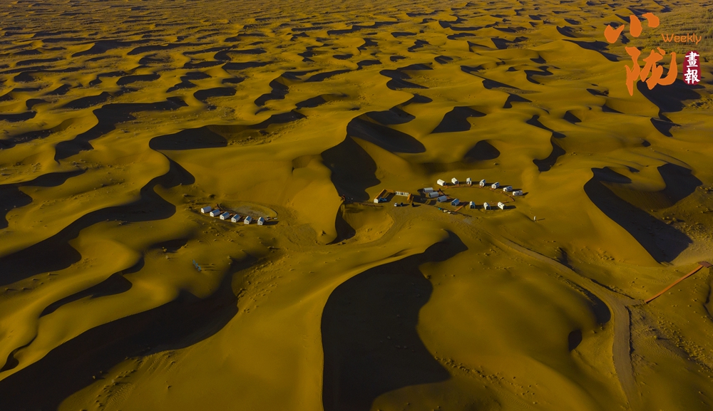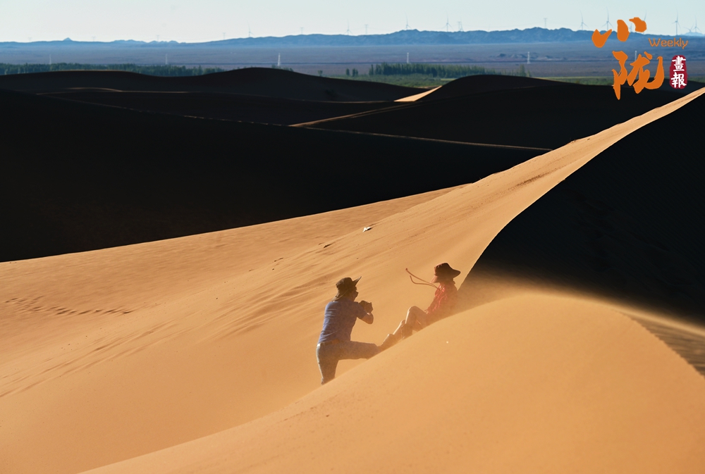夕陽(yáng)西下,極目遠(yuǎn)眺,在余暉照耀下,連綿起伏的沙丘似金色的海浪,一波接著一波,涌向天際。那細(xì)膩的沙紋,在陽(yáng)光的輕撫下,宛如歲月鐫刻的痕跡,每一道褶皺都藏著故事。