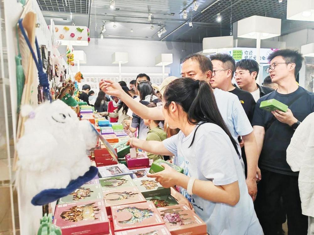 購(gòu)買(mǎi)文創(chuàng)的游客絡(luò)繹不絕。