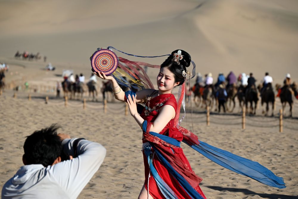 近年來,甘肅省敦煌市深入挖掘特色資源,推出旅游優(yōu)惠政策措施、智能化體驗服務和低空飛行、旅拍等文旅項目產品,不斷豐富文旅業(yè)態(tài),激發(fā)文旅消費新動能。據敦煌市文旅部門統(tǒng)計數據顯示,今年1至4月份,敦煌市旅游接待人數538.78萬人次,同比增長25.8%。