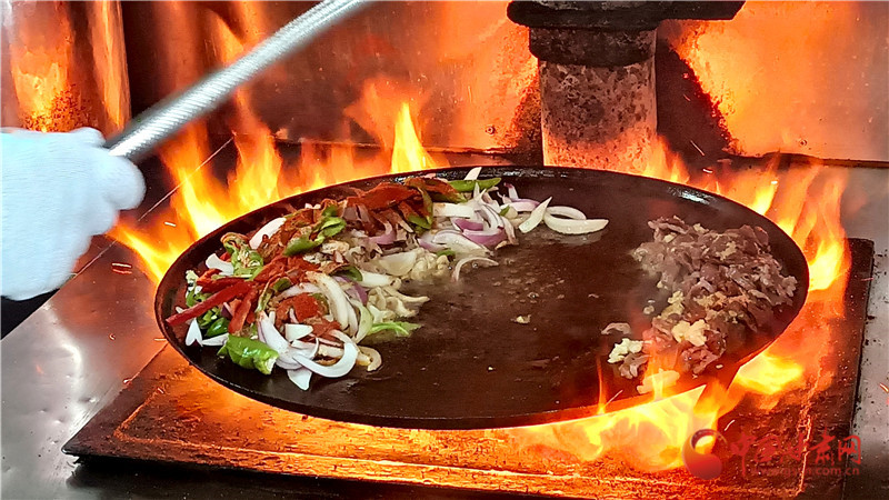 后來這種烹飪方式漸漸被當?shù)匕傩諏W會并加以改良,以牛、羊雜為主要食材,放在鐵鏊子上炒制,山丹炒撥拉由此而來。