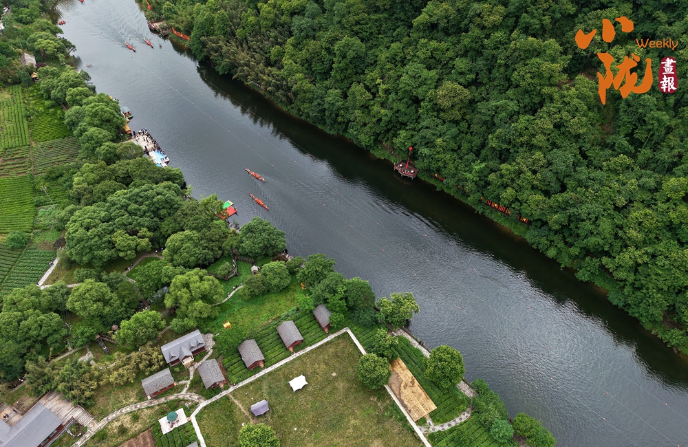 這里滿目青翠,云遮霧罩,山川形勝,樹影婆娑,綠波蕩漾,能讓你感受到,“舟在碧波上,人在畫中游”的詩情畫意。在這青山綠水間,一個個青瓦白墻的新農(nóng)村被綠樹掩映,溪流潺潺,宛如一幅幅動人的畫卷。