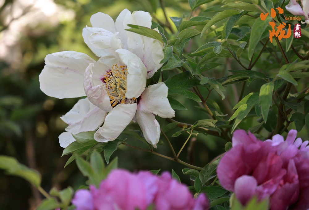 陽光照射下,牡丹粉的如霞,嬌艷柔美;白的像雪,純凈典雅,還有紫、黃等多種色彩相互交織,花朵碩大且花瓣層層疊疊,在微風中輕輕搖曳,散發(fā)出陣陣淡雅的清香,讓人陶醉其中。