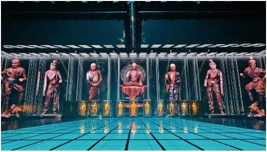 舞美奇觀:運(yùn)用前沿?cái)?shù)字技術(shù),結(jié)合精妙的舞臺(tái)設(shè)計(jì)和燈光效果,在舞臺(tái)上立體還原敦煌洞窟的恢弘與壁畫(huà)的精妙,營(yíng)造如夢(mèng)似幻的沉浸式觀演體驗(yàn)。