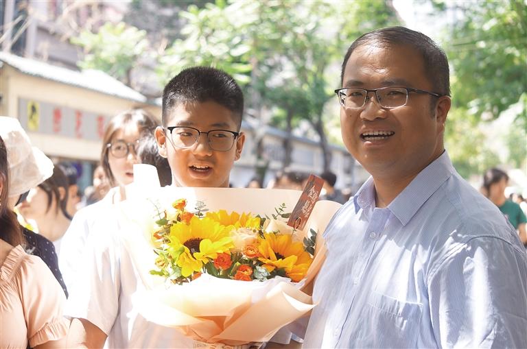 花束也是祝福的首選,“一舉奪魁”的向日葵更是家長(zhǎng)們的最?lèi)?ài)。在各考點(diǎn)附近的鮮花店里,以向日葵為核心的花束賣(mài)得格外好。首科的語(yǔ)文考試結(jié)束后,考生們最先收到的就是鮮花,還有媽媽的擁抱。