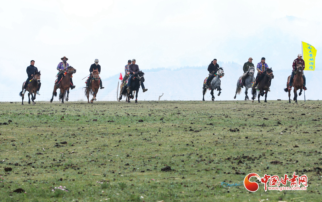 6月21日,甘肅省張掖市肅南裕固族自治縣康樂草原上,騎手們策馬揚鞭,裕固大營賽馬場展開了一場民族賽馬的激烈角逐,引得游客們陣陣喝彩。