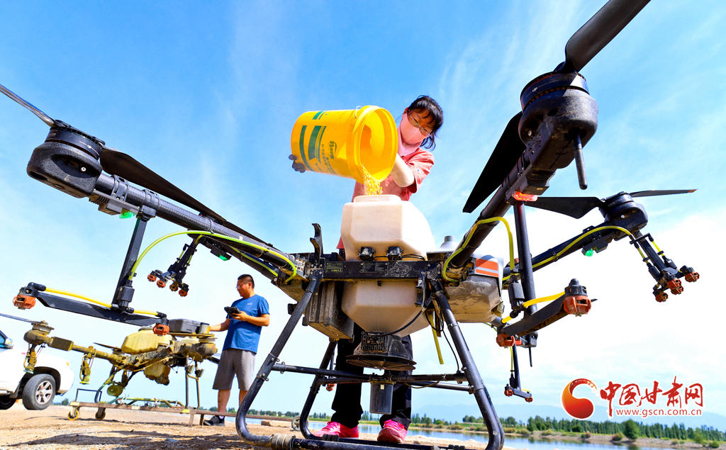 6月24日,在高臺縣夾溝湖水庫螃蟹養(yǎng)殖基地,無人機操作手啟動設(shè)備,載滿飼料的無人機沿預(yù)設(shè)航線在800多畝螃蟹養(yǎng)殖基地上空精準(zhǔn)投喂。