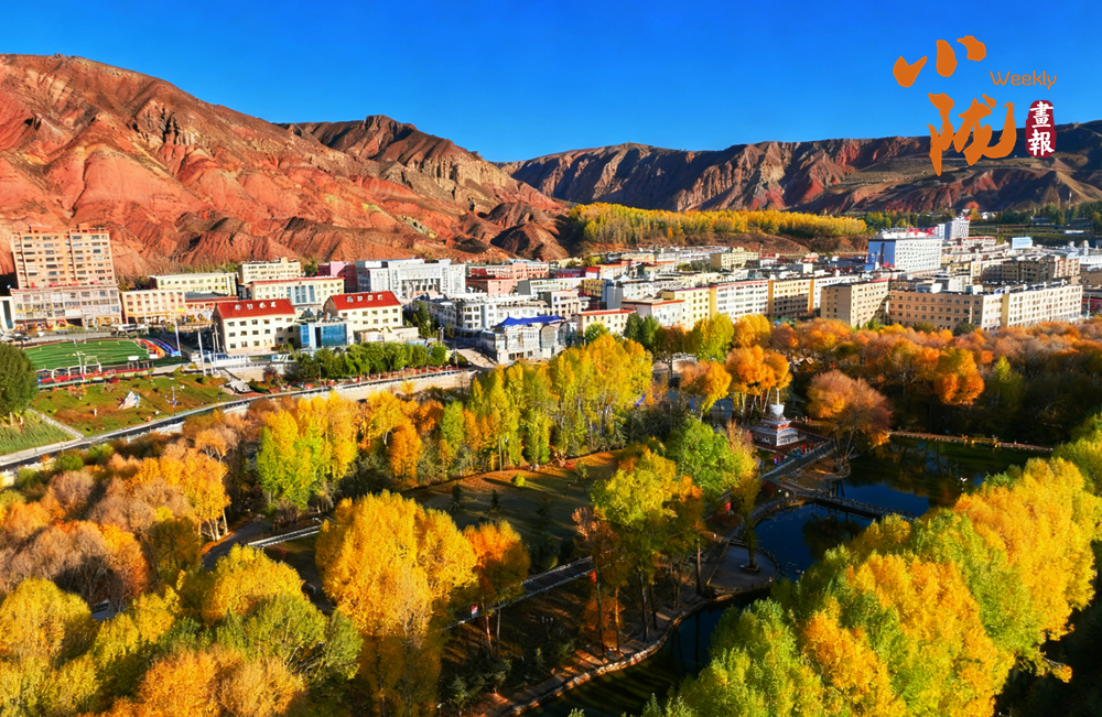 肅南是我國唯一的裕固族居住地,緊緊依偎在祁連山脈北麓,這里有雪山、冰川、草原、丹霞……幾乎濃縮了大西北所有美景。10月,金黃的胡楊將縣城渲染得五彩斑斕,盡顯金秋“北國風光”。