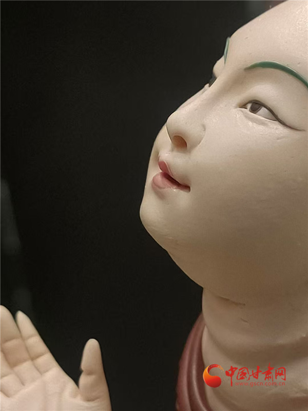 楊凱說,壁畫是平面的,也是立體的,看著石窟中那些栩栩如生的人物,他就想著如何讓這些繪畫在空間立體起來,成為蘊含豐富敦煌元素的面塑。