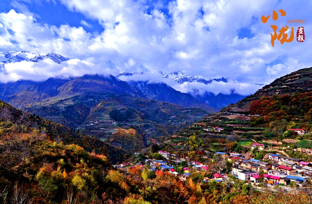 在溝谷深處,依山而建的寨房點(diǎn)綴在斑斕色彩之中。藍(lán)天白云、炊煙裊裊,門前屋后樹(shù)木成景……一切都是最貼近生活的模樣。