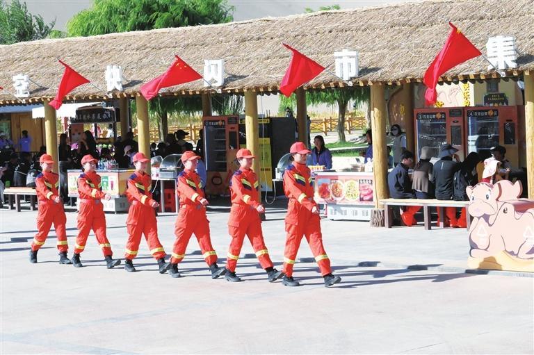 敦煌市消防救援大隊“九色鹿”女子服務隊在景區(qū)開展消防安全動態(tài)巡查。