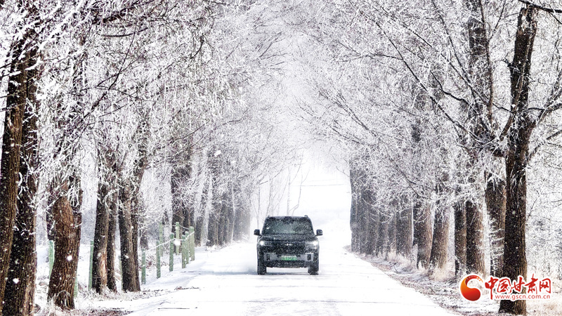 一夜之間,天地銀裝素裹。晶瑩霧凇或綴滿枝頭,或輕覆草木,將道路兩旁幻化成如夢(mèng)冰雪世界。寒風(fēng)掠過,霧凇凝霜疊雪,兼具北國(guó)壯闊蒼茫與冬日溫柔靜謐。