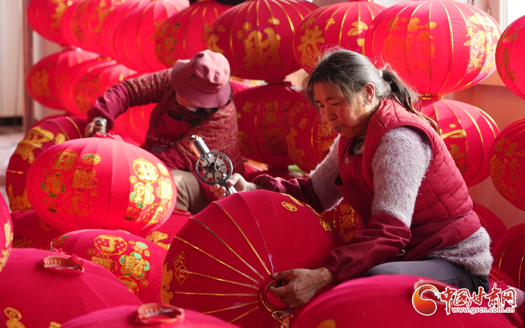 1月13日,莊浪縣宮燈產(chǎn)業(yè)園內(nèi),工人們正忙著制作各式燈籠。隨著春節(jié)臨近,燈籠訂單大幅增加,當(dāng)?shù)厣a(chǎn)企業(yè)正加班加點(diǎn),趕制供應(yīng)節(jié)日市場的大紅燈籠。目前主要生產(chǎn)紅植絨燈籠、仿羊皮燈籠、七彩走馬轉(zhuǎn)燈、鐵口緞面燈籠等二十多個(gè)品種,產(chǎn)品暢銷甘肅、陜西、四川、寧夏、青海等多個(gè)省區(qū)。