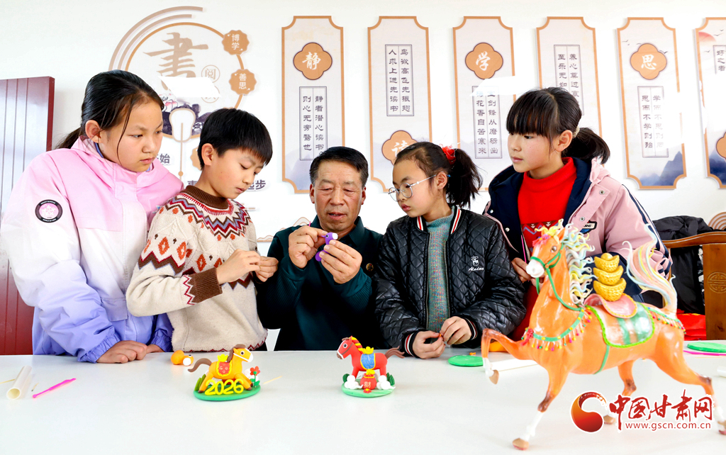 1月29日,在張掖市臨澤縣鴨暖鎮(zhèn)文化中心愛心托管班教室里,省級面塑藝術(shù)非遺傳承人陳會平正帶領(lǐng)孩子們體驗面塑技藝。孩子們在近距離感受傳統(tǒng)文化魅力的同時,也度過了一個充實的寒假。