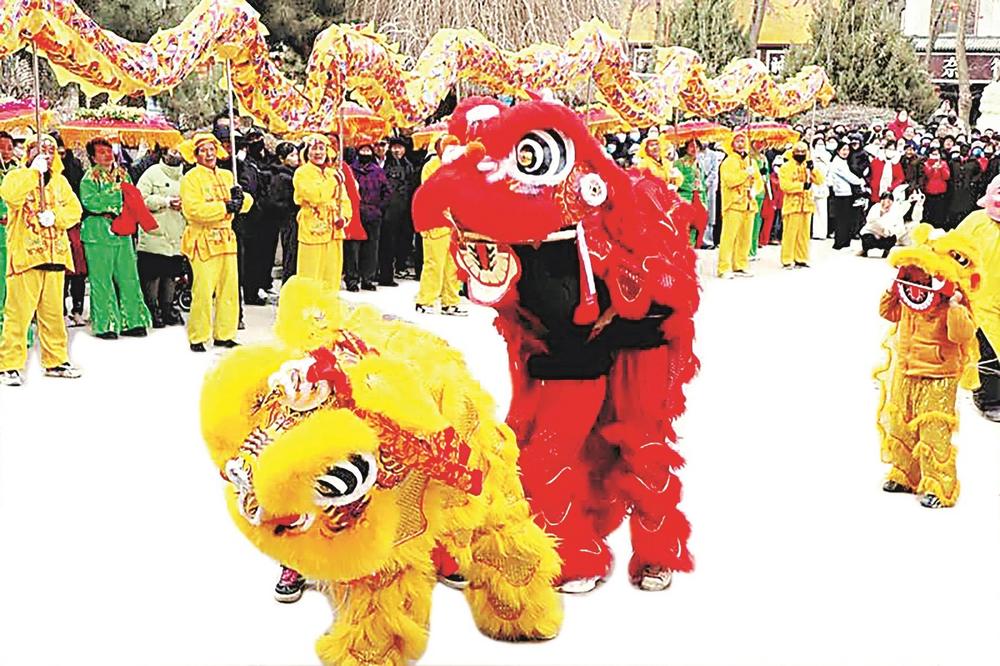 隨著鼓點愈發(fā)急促,廣場上頓時沸騰起來。舞獅一躍而起,時而翻滾、時而嬉戲;秧歌隊踩著碎步徐徐前行,扇子與花燈舞動出五彩斑斕的弧線。鑼鼓手們節(jié)奏分明,鏗鏘之聲震得人心里發(fā)燙。圍觀的群眾里三層外三層,孩子們騎在父親肩頭,老人瞇眼含笑,年輕人舉著手機不住地按快門。一位村民擠在人群中高聲喝彩:“這才叫過年!”