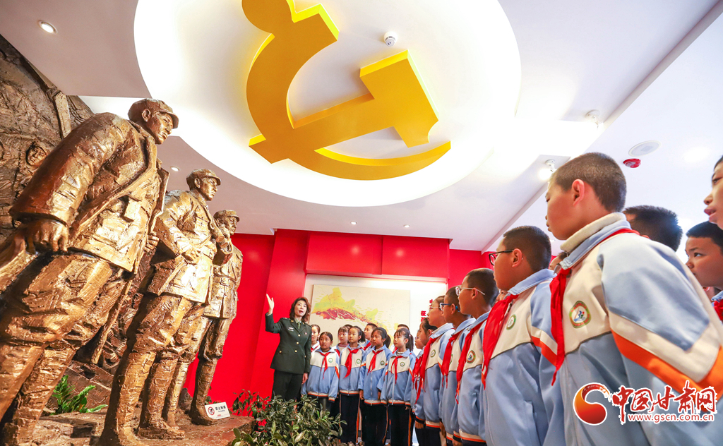 3月30日,高金城烈士紀(jì)念館內(nèi),張掖市甘州區(qū)北街小學(xué)的同學(xué)們正在聆聽講解員講述革命烈士的壯烈事跡。